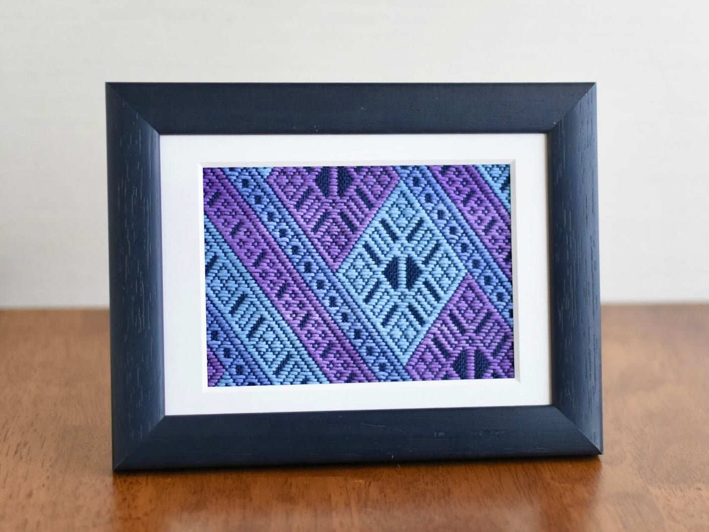 基礎模様が複合された図案を理解したり、ひと続きの図案の仕組みを理解したりと、こぎんのリズムを楽しめるようデザインしました。初心者の方も安心してお楽しみください。
