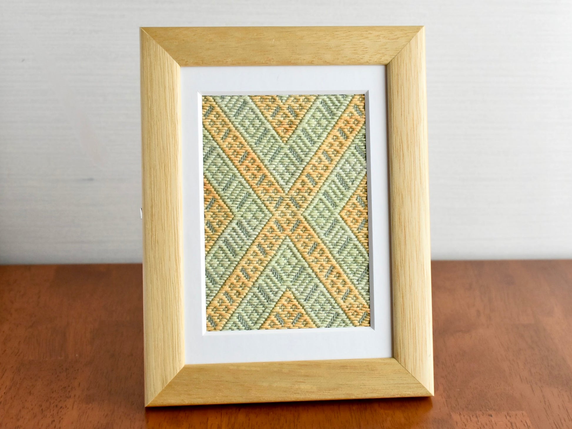基礎模様の複合図案やひと続きの図案の仕組みを理解し、こぎんのリズムを楽しめるようデザインしました。キット3の応用図案ですのでスキルアップにおすすめです。