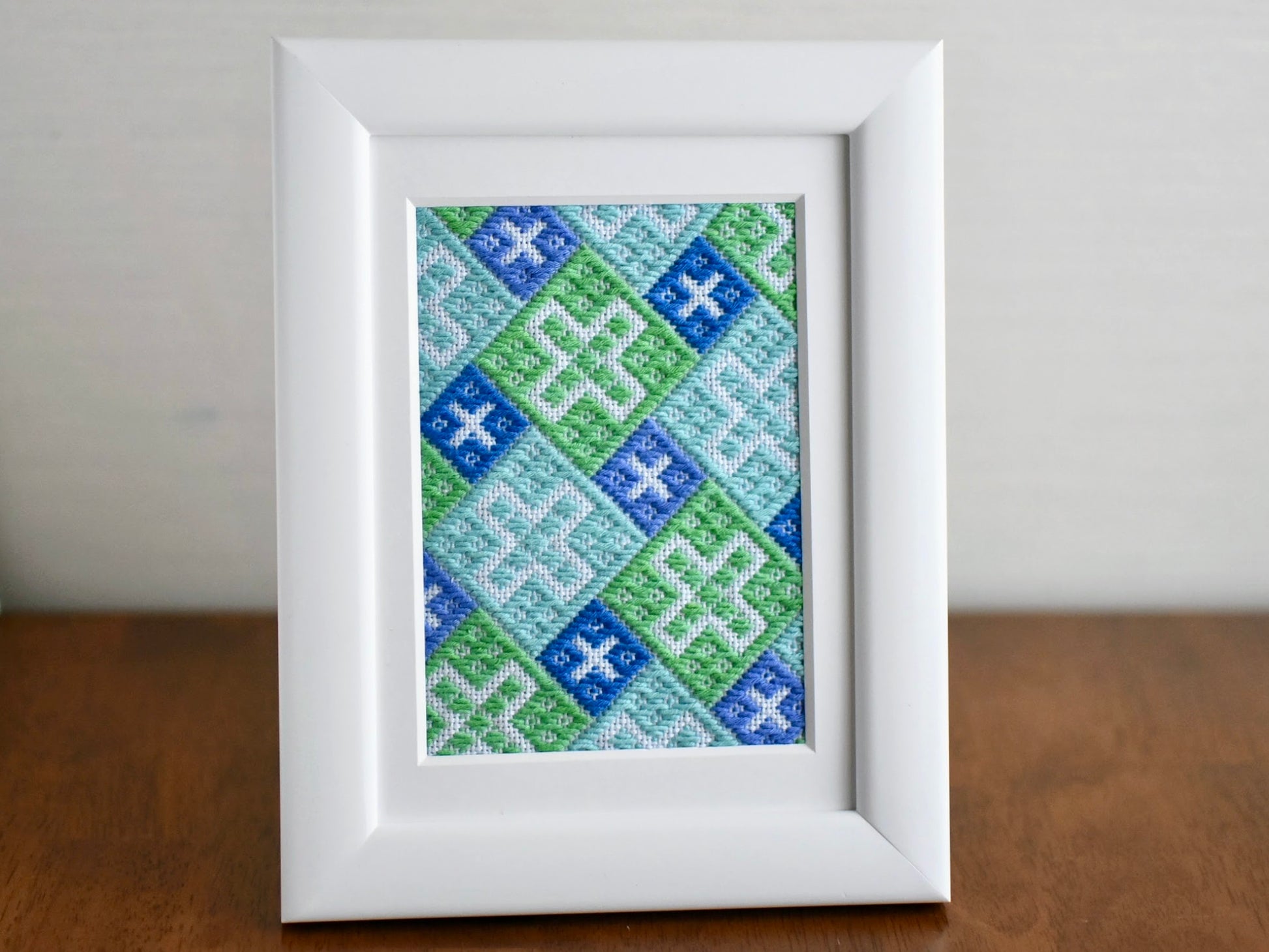 紫陽花デザインのこぎん刺しキットです。模様一つ一つを刺していくので初心者の方も安心してお楽しみいただけます。