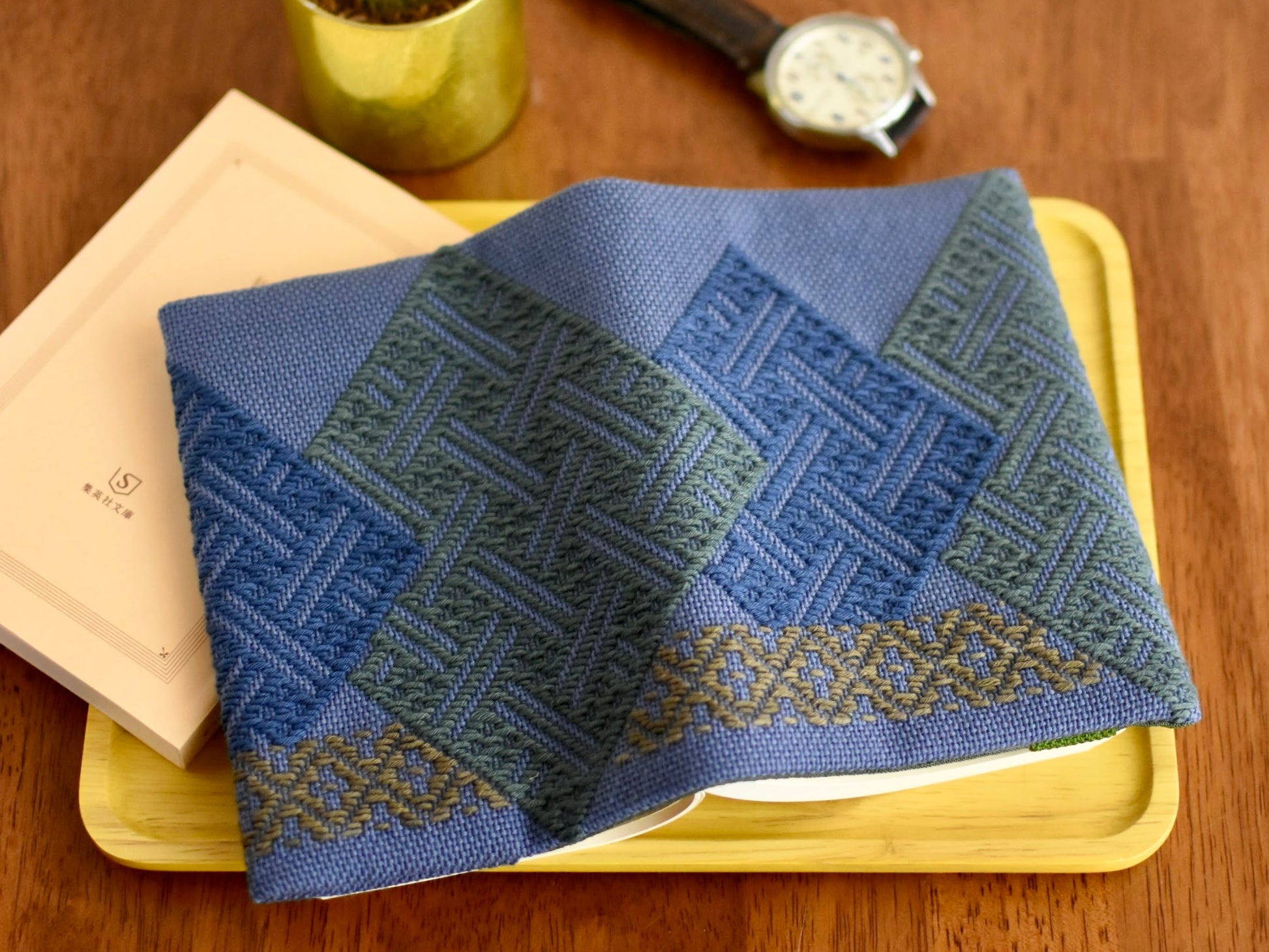 こぎん刺しの文庫本サイズのブックカバーキットです。モドコ(基礎模様)を発展させた図案ですので、初心者の方もこぎん刺しのリズムを楽しみながらお作りいただけます。仕立てが苦手な方も安心してお楽しみいただけるよう、丁寧な説明書が付いてきます。