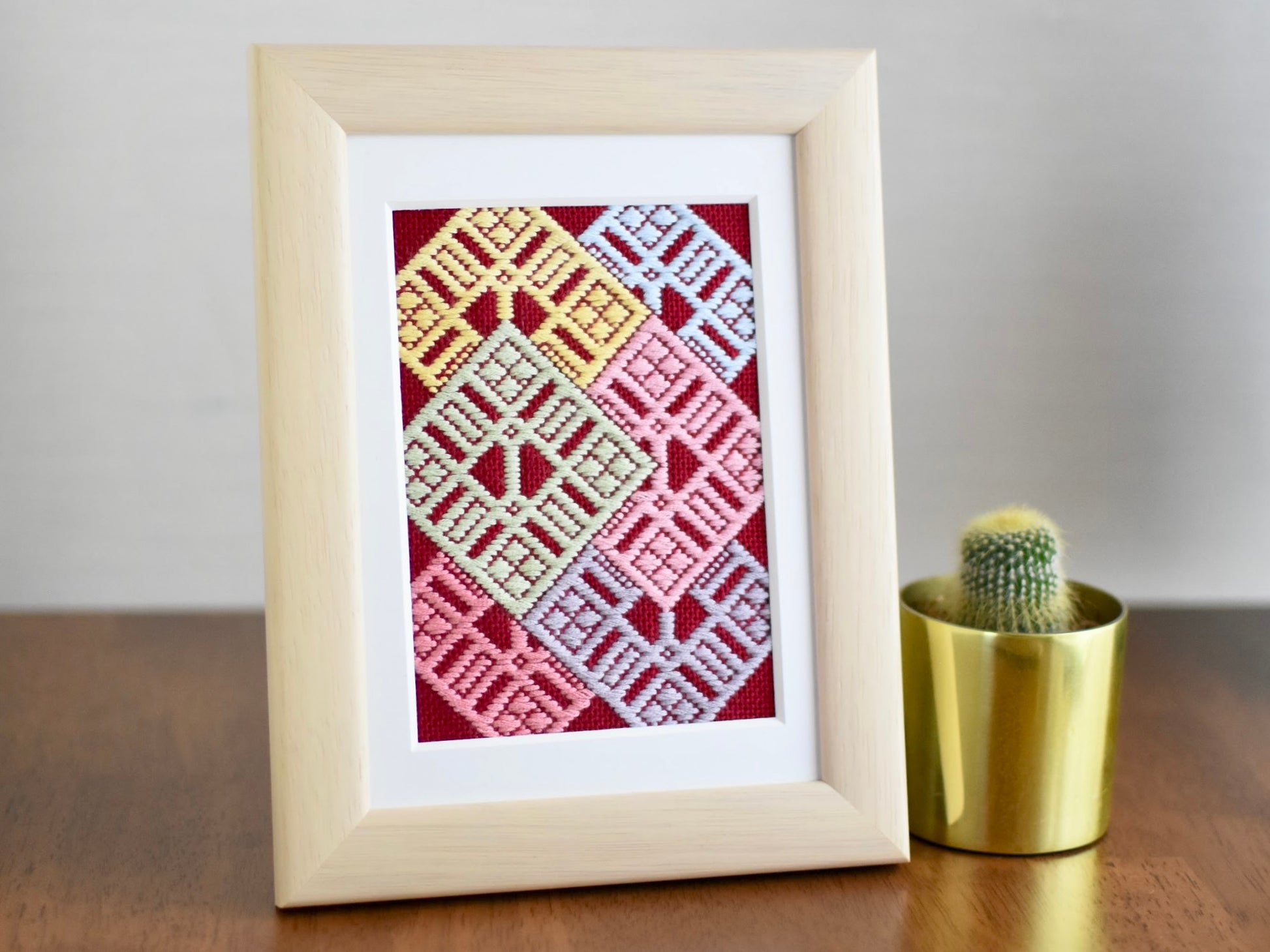 母の日や敬老の日など、大切な日に想いを伝える花束をイメージしたこぎん刺しキット。一つの模様が重なり合うようなデザインで立体感と一体感が生まれました。 模様一つ一つを刺していくので初心者の方も安心してお楽しみいただけます。