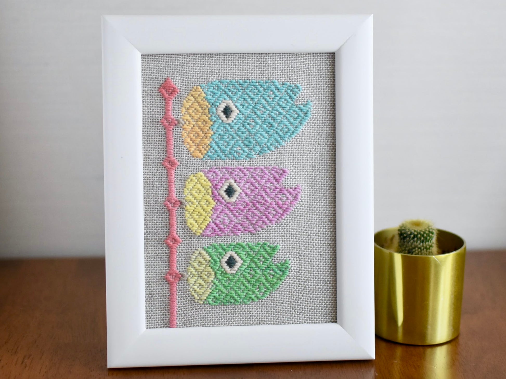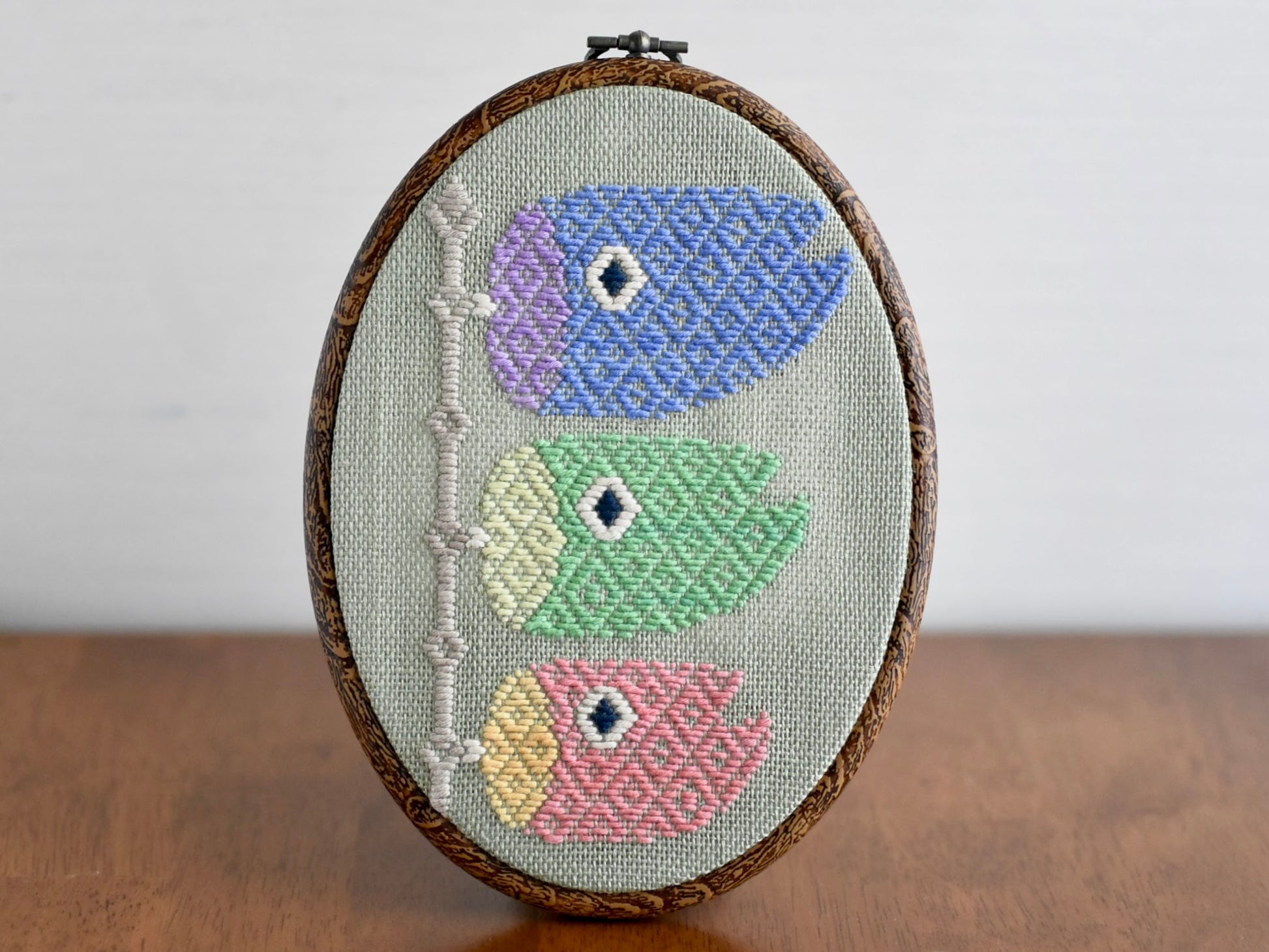 こぎん刺しの伝統模様をパズルのように組合せた鯉のぼりキット。お子さまへのプレゼントや季節のご挨拶にもおすすめです。