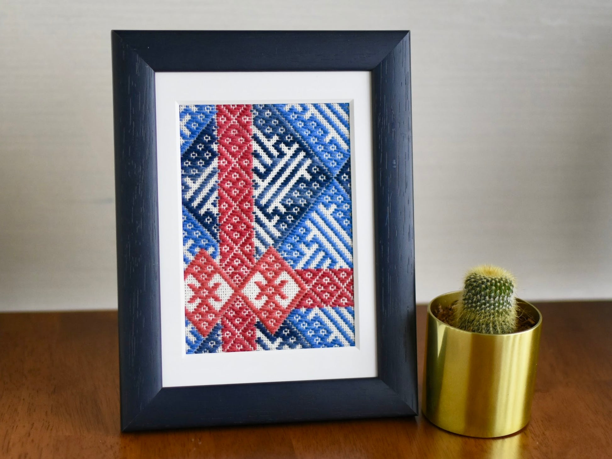 ・えんじ地作品▶️布:こぎんドゥエル、糸:つきやこぎん糸(8本合わせ)
