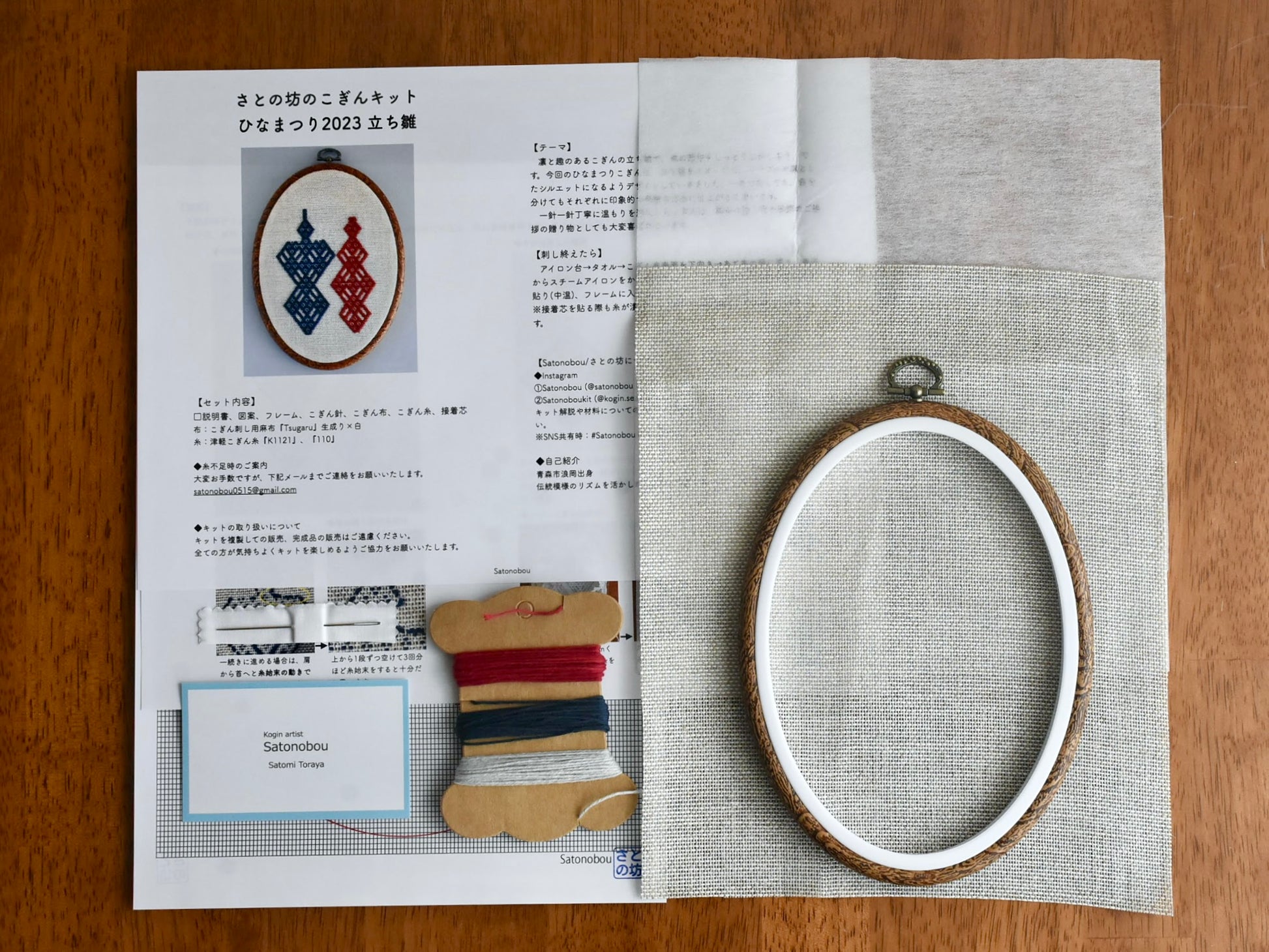 ・こぎん糸は図案通りに刺すと十分に足りる量ですが、不足した場合で追加でご購入ください。
